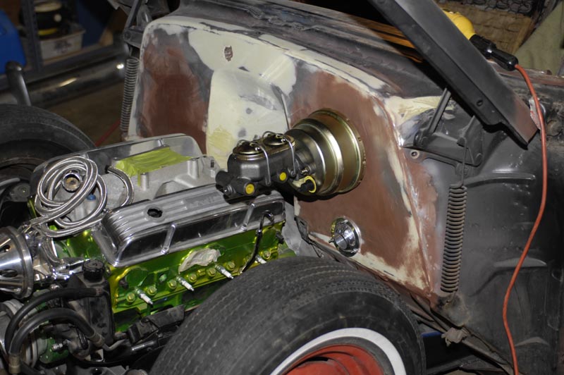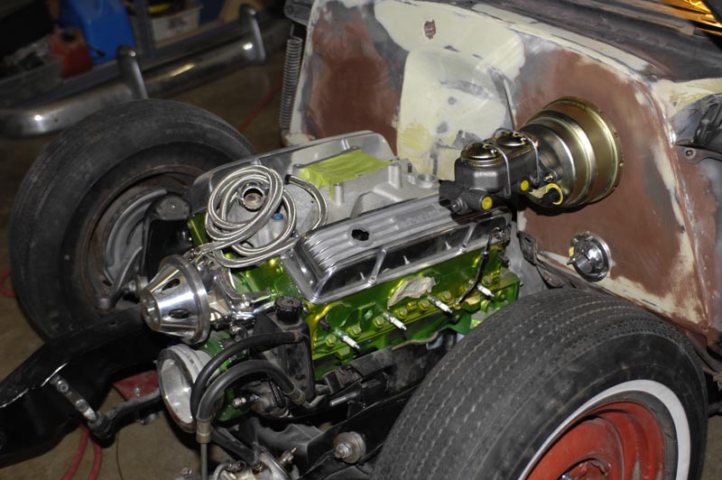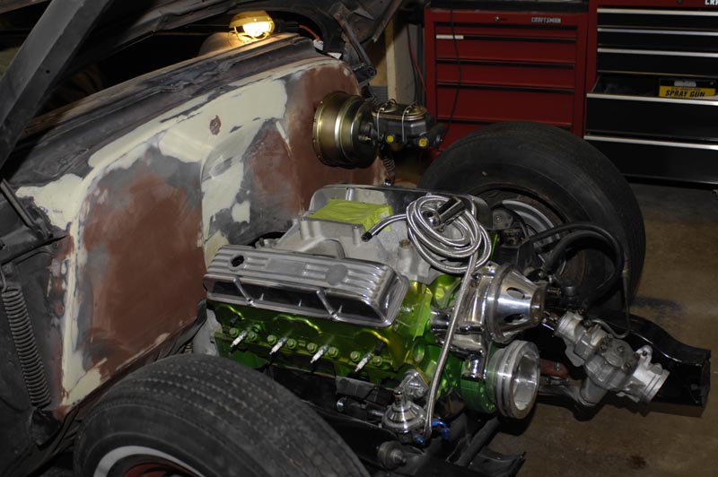 5-9-09 --- Front sheetmetal hung - engine closer to running.